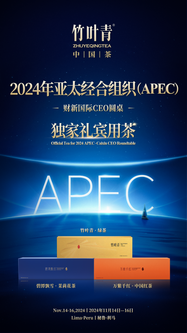 2024年亚太经合组织(APEC)会议正在秘鲁首都利马举行。中国茶竹叶青受邀成为“2024年亚太经合组织(APEC)财新国际CEO圆桌独家礼宾用茶”。
