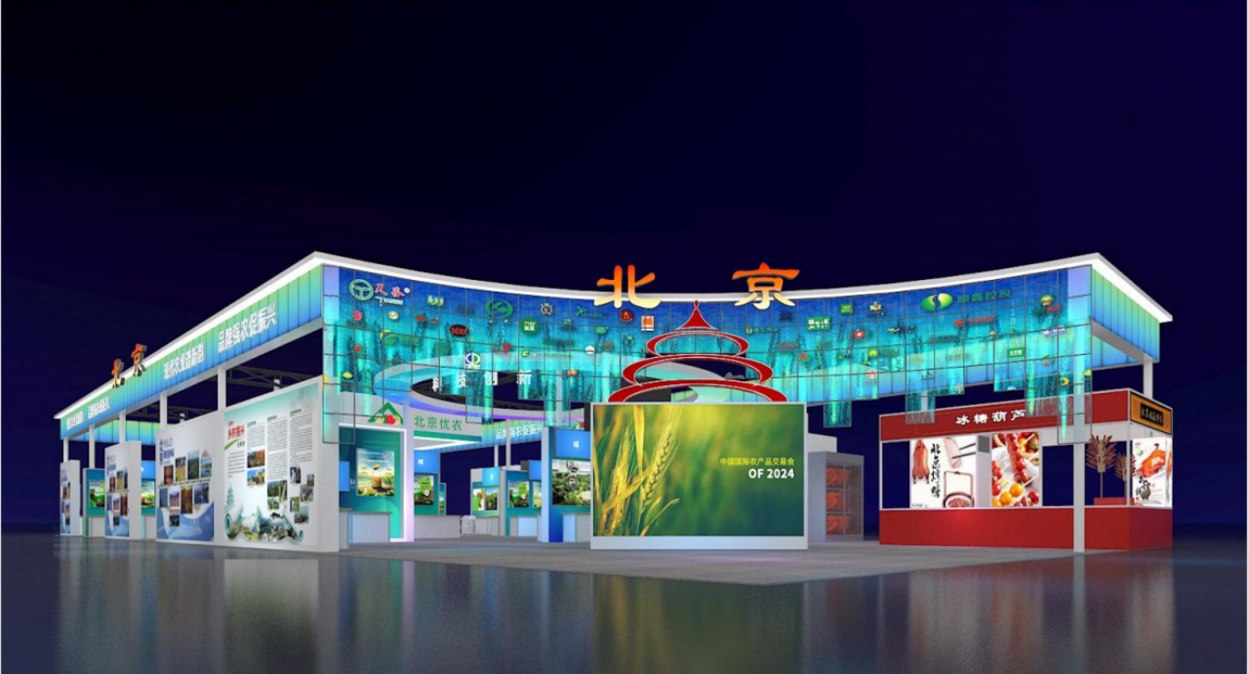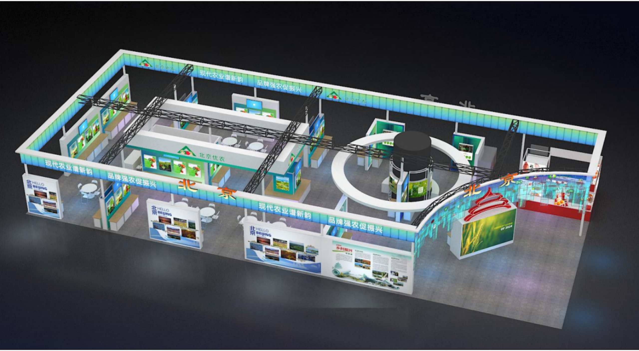 互动体验展区面积100平方米,该区域以天坛祈年殿为设计灵感,主造型别具一格,一块LED大屏幕将滚动播放北京乡村振兴的精彩画面。同时,展区将分时段、持续性地展示“北京优农”品牌企业和科技创新企业的产品推介,从视觉上深入了解北京农业的最新成果与前沿技术。