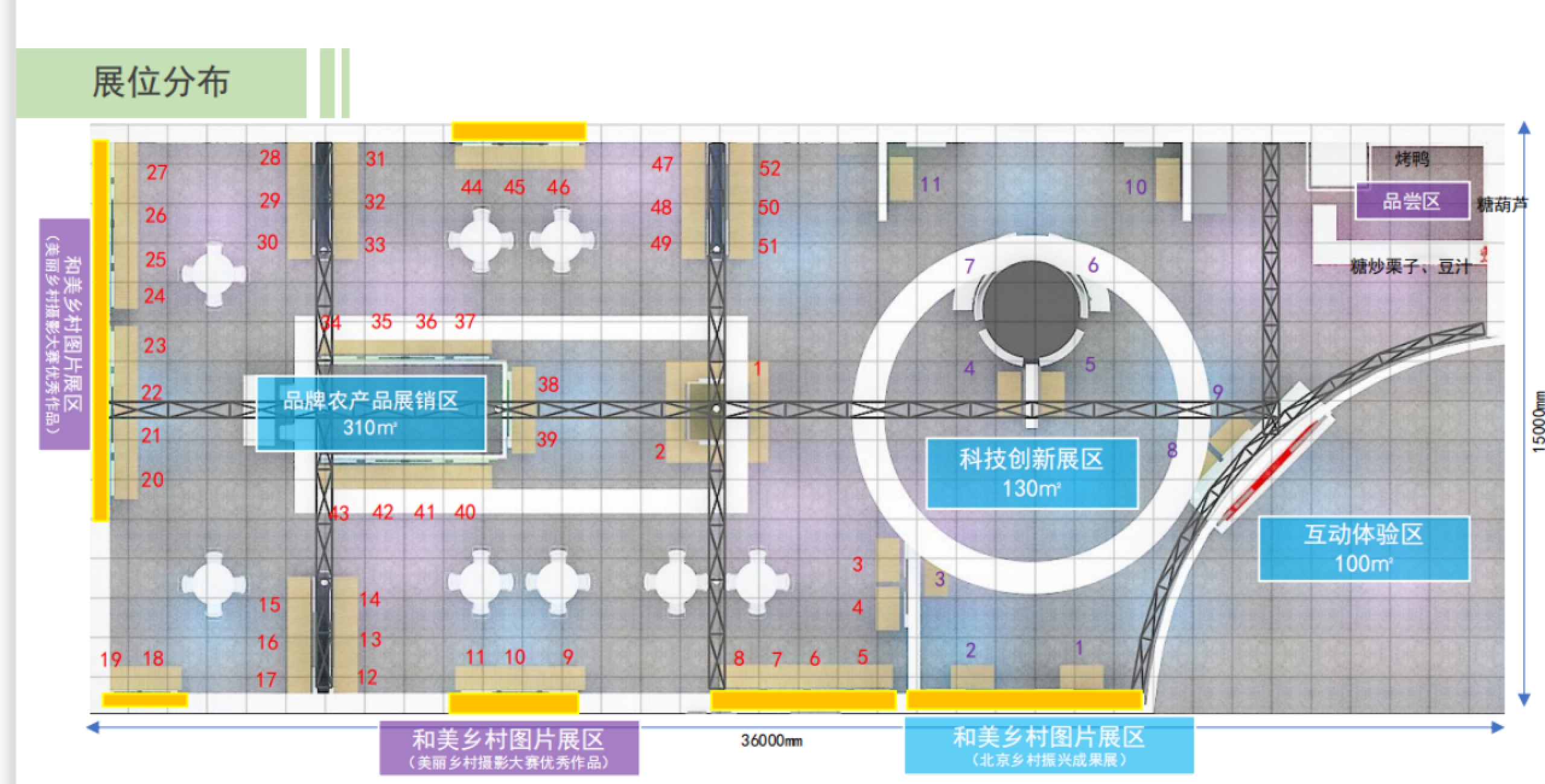 品牌农产品展销区面积310平方米,区域顶部独立形象设计,展区以有序的独立展岛为形象主体,根据企业需求设计灯箱、液晶屏、展示桌等对应展示形式,匹配商务洽谈桌椅和储藏间。将有54家“北京优农”品牌主体现场参展和宣传推介。展品涵盖地理标志农产品、绿色有机、老北京口味、非遗特色产品等多个领域。
