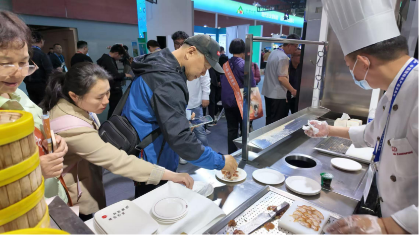 北京展团携63家企业为公众带来智慧农业、现代种业、品牌农业等领域代表性、创新性、引领性的产品和技术。土壤现场快速检测系统、智能电动拖拉机、“数字京村”乡村智慧大脑等高科技展品令人耳目一新;地理标志农产品、绿色有机、老北京口味、非遗特色产品等京味十足的特色农产品让人目不暇接;现场烹制北京烤鸭、糖炒栗子、糖葫芦等经典京味令品尝的观众赞不绝口,而全聚德“盛世牡丹”手工片制烤鸭绝活让现场观众大快朵颐的同时,还品味了一道首都非遗文化大餐。