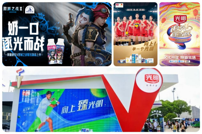 在体育营销领域,光明乳业抓住巴黎奥运会、上海网球大师赛、FISE国际极限运动、女排锦标赛等热点赛事,融入创新体育营销——巴黎奥运会期间,深化向上的光明品牌精神,快速响应市场变化,通过全媒体传播与多元合作扩大品牌影响力;在上海网球大师赛中,又精心策划了为期14天的精彩互动活动,邀请光明鲜活大使郎平和张之臻参与,并现场举办乳业品牌日活动。此外,光明乳业还积极投身新兴体育赛事,与虚拟赛艇联赛、精英赛等多项活动合作,展示品牌的年轻活力,比如光明莫斯利安与《双城之战》第二季合作,推出联名酸奶、定制联名礼盒、开展线下快闪店等活动,在电竞事业中展示光明乳业的年轻风采。