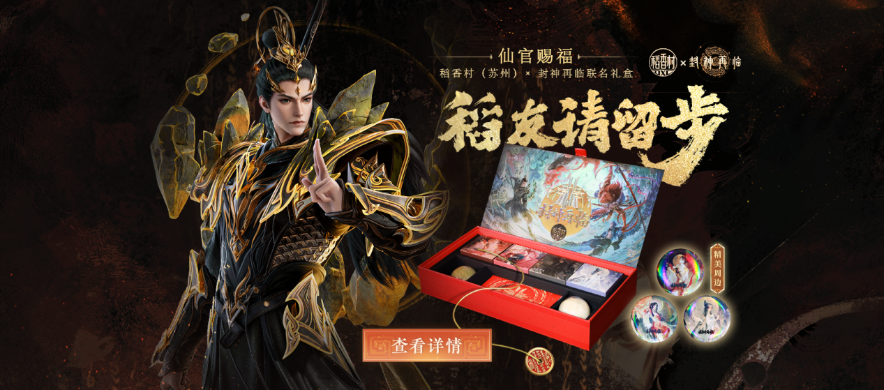 1月16日,中华老字号苏州稻香村与热门国风手游《封神再临》跨界携手,精心打造的联名礼盒“仙官赐福”于各大电商平台正式开售。这一消息迅速引发关注,为即将到来的春节市场注入了全新活力,给消费者带来别具一格的年货新选择。
