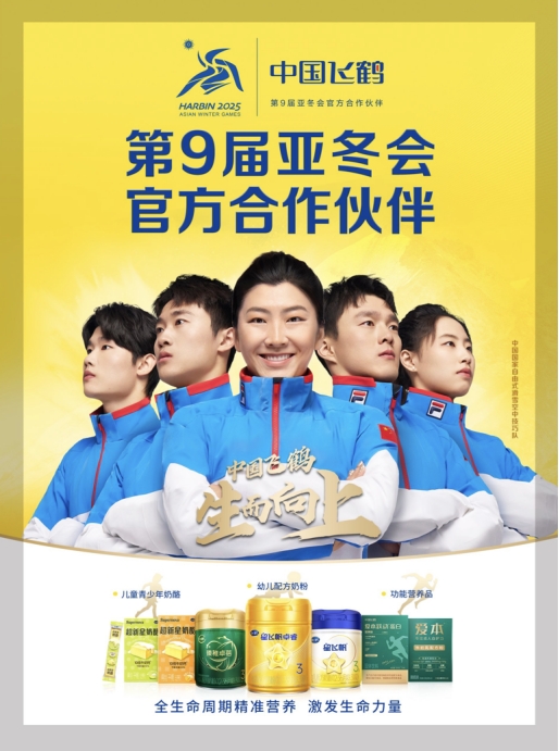 据悉,第九届亚洲冬季运动会即将在哈尔滨举办,中国飞鹤旗下星飞帆卓睿、Supernova超新星奶酪、爱本牛初乳分别与中国国家花样滑冰队、中国国家速度滑冰队、中国国家自由式滑雪空中技巧队、中国国家跳台滑雪队签约。飞鹤也成为这4支国家冰雪运动队的合作伙伴,以及乳制品合作伙伴,助力国家队在赛事中再创佳绩。运动员、教练员和观众都可以在现场感受飞鹤全生命周期产品的营养补充,更好地奋勇争先、超越自我。