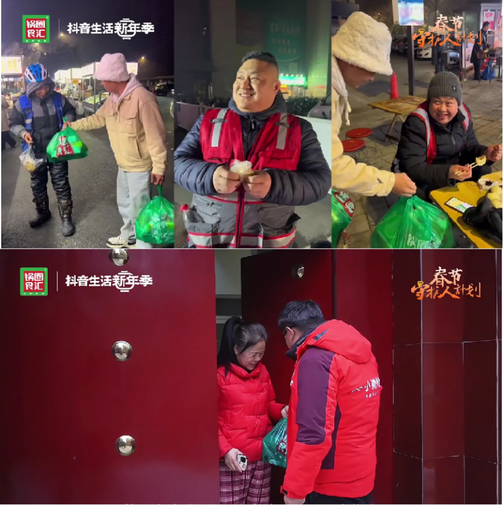 此外,锅圈特别关注了那些春节期间待业不归乡的人员。他们为了家人的幸福和梦想,选择留在城市寻找工作机会。锅圈联合城镇外卖员,为他们送去了温暖与关怀,让他们感受到了家的温暖。