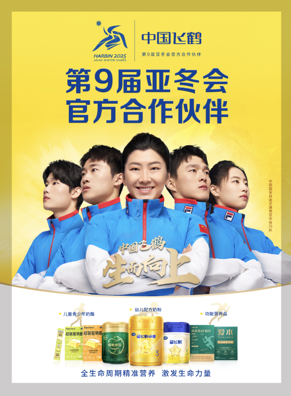 2024年10月,飞鹤乳业正式官宣成为第9届亚冬会官方合作伙伴,并同步签约中国国家花样滑冰队、速度滑冰队、自由式滑雪空中技巧队、跳台滑雪队,成为其乳制品合作伙伴。