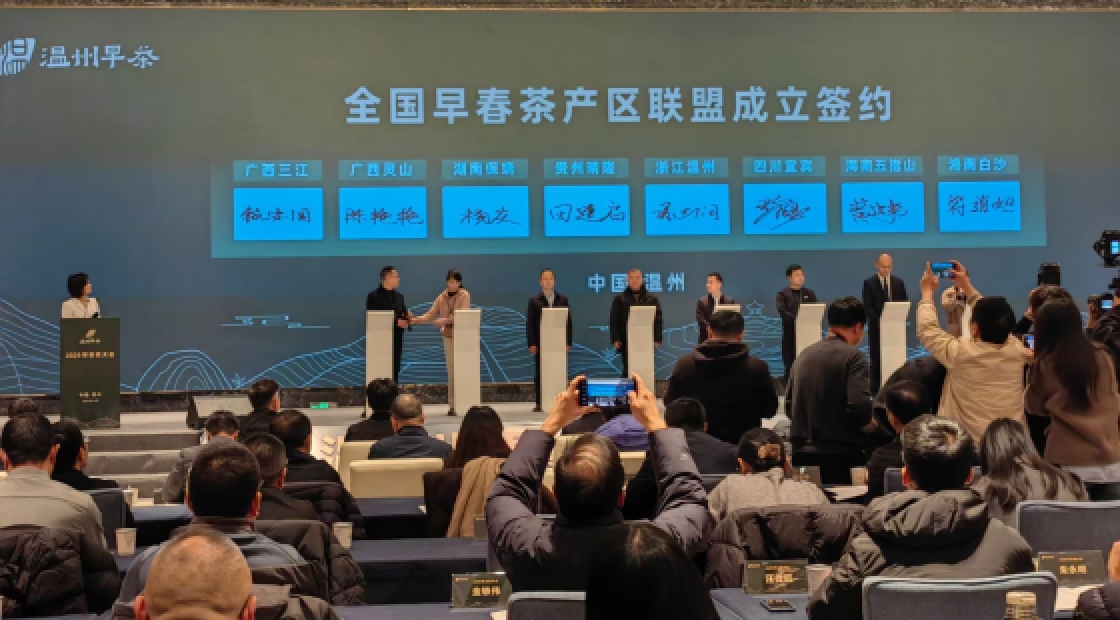 近日,全国首个跨区域早春茶产业协作平台——全国早春茶产区联盟在2025早春茶大会上成立。早春茶是我国茶产业产品体系里面的璀璨明珠,具有非常重要的经济、文化、审美价值。当前我国茶叶市场区域品类竞争非常激烈,并且早春茶的发展走势对全年的产业市场具有非常重要的引导示范作用和首发效应,也是全年茶叶价格的风向标。发展早春茶对促进茶叶消费、带动茶农增收都具有重要意义。