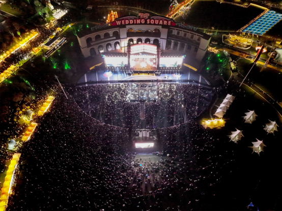 随着夜幕降临,海澜飞马休闲乐园因华丽音浪与璀璨星光而沸腾。超强阵容+豪华歌单,搭配顶级音响和绚丽的舞台灯光,为观众带来一场极致的视听盛宴。