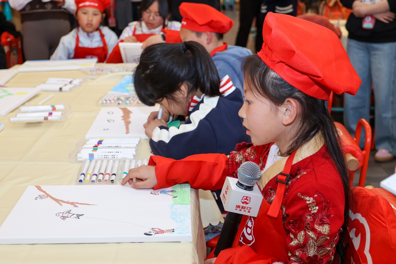 在“一起画春天”的环节,孩子们用五彩画笔在长卷上自由挥洒,有的画出风筝飞舞的蓝天,有的描绘与小伙伴游戏的场景,一名男孩指着画中的彩虹桥说:“我想让所有小朋友都能走过这座桥,去上学、去交朋友!”稚嫩的话语中饱含对美好未来的憧憬。