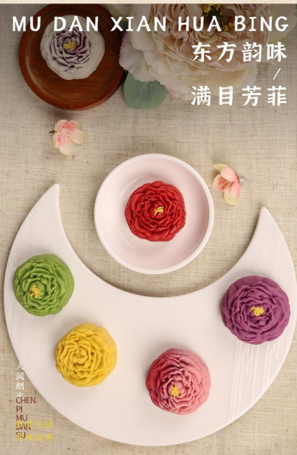 据介绍,今年苏州稻香村结合牡丹花的花蕾期、初绽期、盛放期三段花期,对牡丹鲜花饼造型进行了全新设计。其中,创新研发的陈皮牡丹酥采用混糖工艺,外皮双色交织,形似初绽牡丹,饼皮松软细腻,入口即化;遵循“药食同源”理念的陈皮牡丹馅料,经过多次试验,恰到好处地将陈皮果香与牡丹清甜进行融合,让内馅绵密香甜。