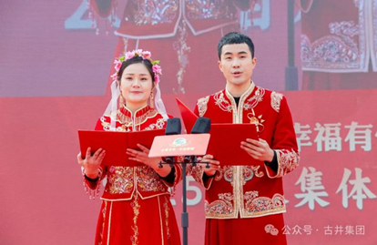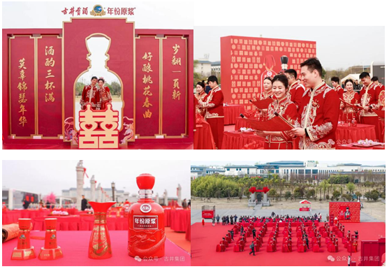来自古井集团的新人代表吴娜娜、樊帅分享恋爱故事:"我们因古井贡酒而结缘。从相识到相知,再到决定共度余生。我们的爱情,就像古井贡酒一样,经历了时间的沉淀,愈发珍贵。"