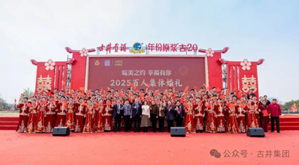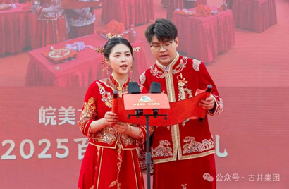 3月30日,由古井集团联合安徽省妇女联合会共同主办的古井贡梦圆“徽姑娘”三年助学行动计划启动仪式暨“皖美之约 幸福有你”2025百人集体婚礼在古井酒神广场开启。