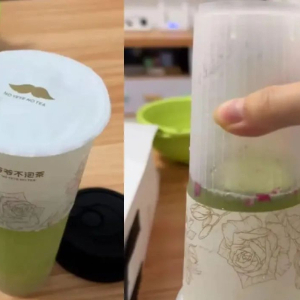 据该网友发布的视频,消费者将未开封的饮品上下翻转,饮品只有半杯,该杯子上半身为不透明的包装,消费者称她点的是去冰的饮品,“上半身设计成不透明的,我要不是拎着感觉这么轻,都不会倒过来看看”。