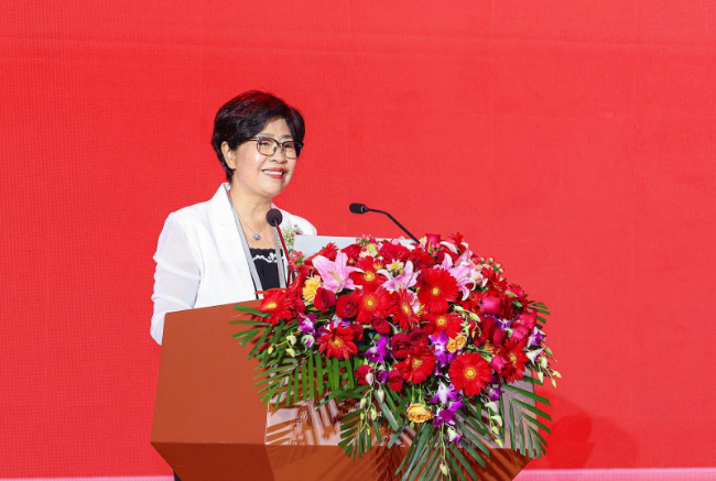 中国乳制品工业协会执行理事长刘美菊主持大会开幕式