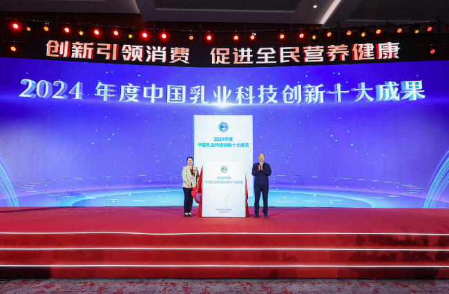 作为本次大会的核心亮点之一,“2024年度中国乳业科技创新十大成果”正式发布。据悉,这十大成果从近七十项申报成果中经专家严格筛选而出,涵盖技术创新、产业转化及市场效益等维度,集中体现了当前乳业科技研发的前沿水平。中国农业大学教授任发政在解读《2024 年度中国乳业科技创新十大成果》中提到,国内乳企对于科技创新的关注度是空前的,科技创新驱动乳业结构调整效果初现,“科技赋能使行业应对压力和困局更加从容,可以看到,国内产业发展中种公牛自主培育取得突破;生物强化技术日趋成熟;低热杀菌技术持续创新,实现牛奶风味与营养双提升;乳铁蛋白分离技术稳拓新域,有效增强产业韧性;国产发酵剂成功突围;食药同源融入乳品创新;人工智能推动全产业链效率提升;高速无菌灌装技术取得突破;母乳低聚糖合成技术取得突破;数智化工厂破茧而出。”
