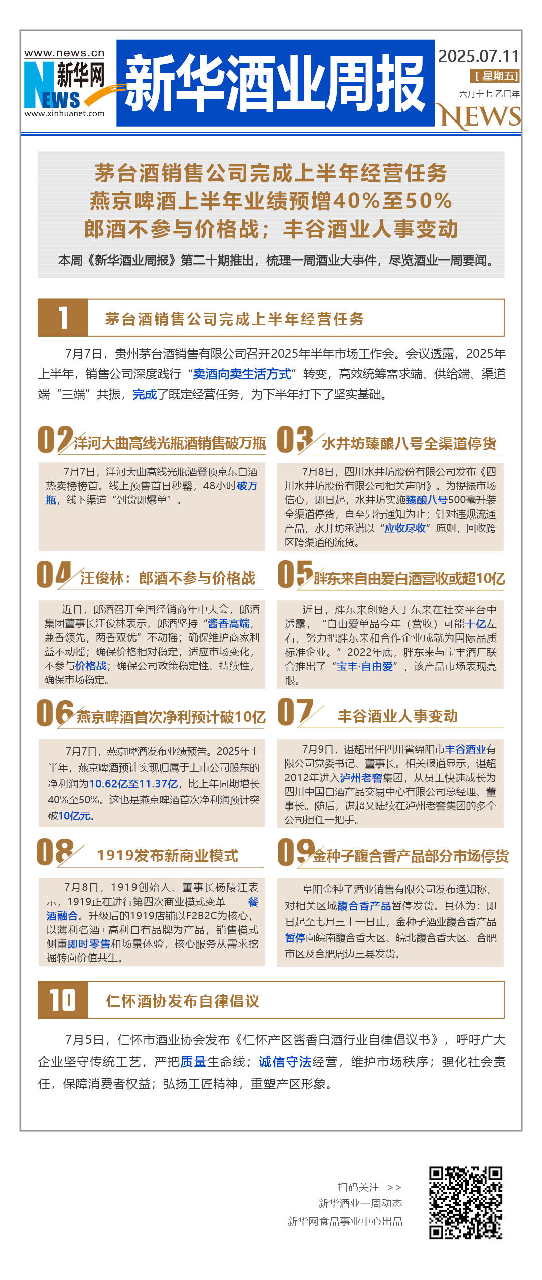 本周《新华酒业周报》推出第二十期,梳理一周酒业大事件,尽览酒业一周要闻。