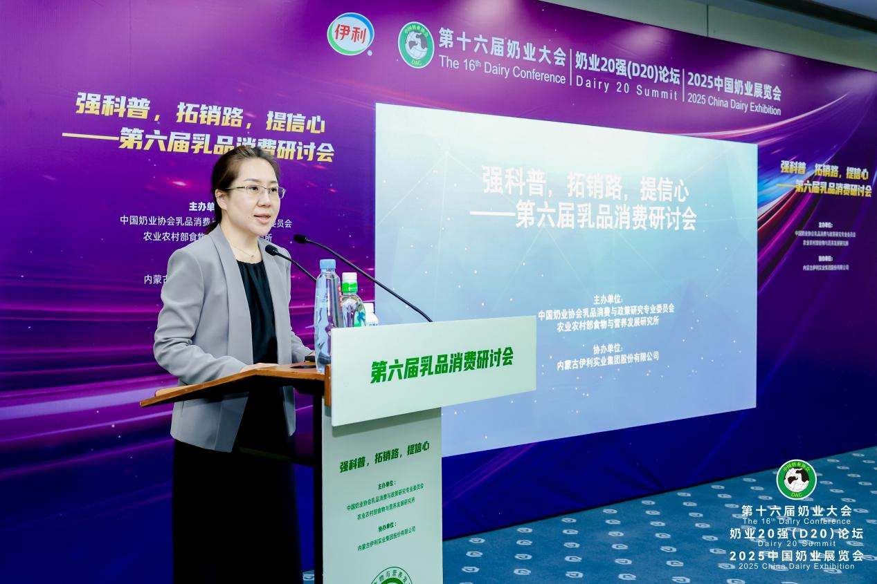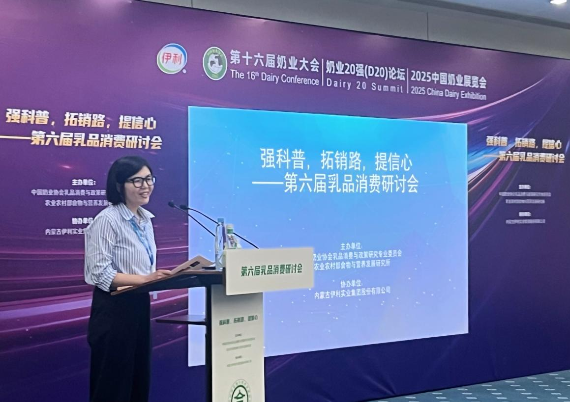 会上,中国奶业协会乳品消费与政策研究专委会主任程广燕主持研讨会报告环节。专注不同领域的与会嘉宾也分享了各自对行业的思考。伊利集团市场研究总监单琼作《AI洞察驱动创新发展》专题报告。尼尔森IQ北区销售增长团队负责人、副总监郑健作《穿越周期,局部突破》专题报告。中国社会科学院农村发展研究所研究员刘长全作《中国奶业供需形势与转型发展》专题报告。荷兰合作银行食品农业研究部执行总监、乳业高级分析师黄文君作《探索中国乳品行业深加工结构性转型机会》专题报告。中国农业大学副教授、中原食品实验室功能乳制品创新中心主任陈翰作《功能性糖与代糖的优势及其在乳制品中的应用》专题报告。