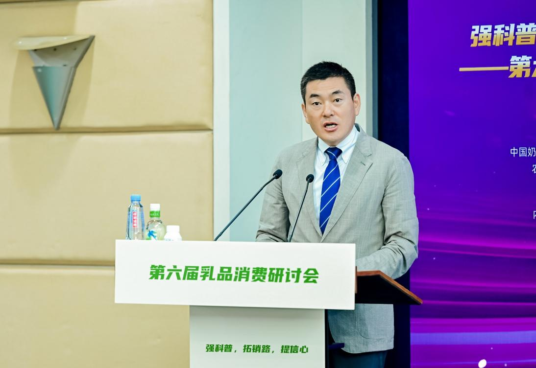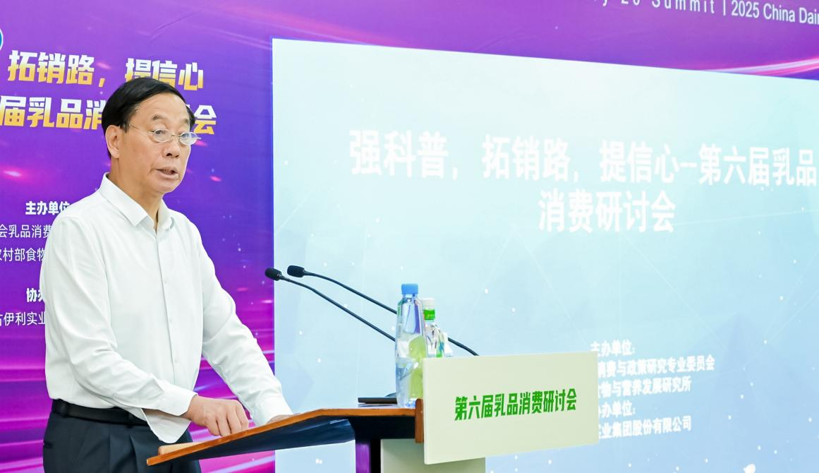 陈萌山围绕“强科普,拓销路,提信心”主题作了致辞,他指出奶业的高质量发展,不仅关乎广大消费者的营养健康,还关系到农业增效、农民增收以及农村的繁荣稳定。当前我国乳品消费市场面临着居民乳品营养需求认知不足、养殖生产加工水平与社会需求适配度不高和国民对国产乳品质量信心不够等诸多挑战。他强调要整合科普资源、创新科普形式、提高科普精准度,以强科普提升国民对乳品营养的认知水平;要加强传统渠道建设、拓展新兴渠道、推动特殊人群饮奶普及、优化消费场景,以拓销路优化乳品市场流通与消费场景;要加强奶源基地建设、提升乳品加工水平、加强品牌建设、强化质量安全监管,以提信心推动奶业全产业链高质量发展。