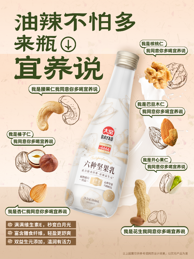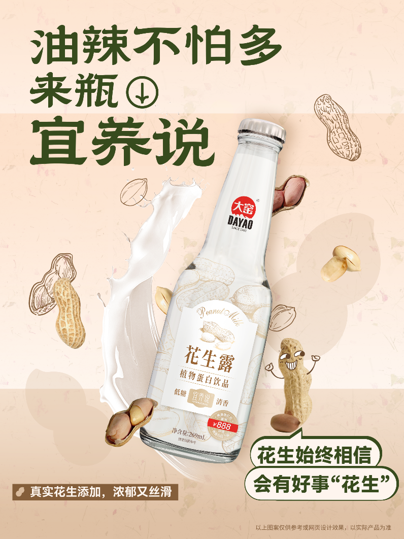 其核心竞争力在于双重优势叠加:既具备成熟品牌的市场认知和餐饮渠道优势,又能通过“宜养说”系列实现产品形态和品牌形象的年轻化跃迁。尤其关键的是,大窑选择的坚果乳、风味奶茶等细分方向,避开了同质化竞争,而是聚焦“餐饮+功能”差异化赛道,通过解腻解辣等场景化需求切入市场。