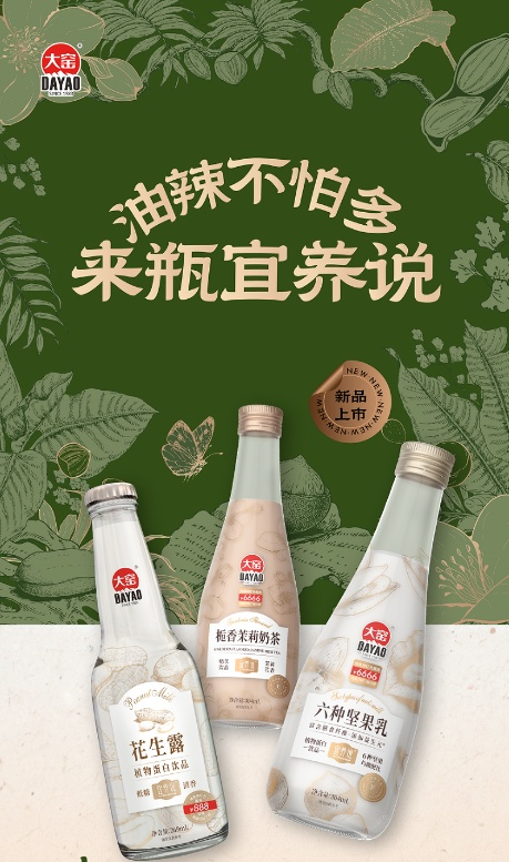 基于对市场趋势与消费者需求的深度研判,大窑饮品精准布局高成长性植物蛋白赛道,推出“宜养说”植物蛋白战略新品,包含六种坚果乳、栀香茉莉奶茶和花生露。新品在延续大窑餐饮渠道传统优势的基础上,叠加健康养生,从而突破季节性销售限制,实现全场景覆盖的战略升级。