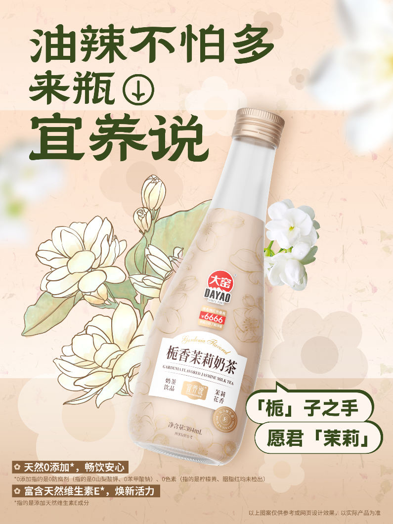 大窑“宜养说”系列精准切入这一赛道,三款产品各具特色:六种坚果乳富含维生素E和膳食纤维,添加双重益生元助力肠胃健康;栀香茉莉奶茶融合新西兰进口乳源与茉莉、栀子双重花香,即享街饮级特调又保留健康属性;花生露则主打低糖概念,采用花生酱实现口感创新。