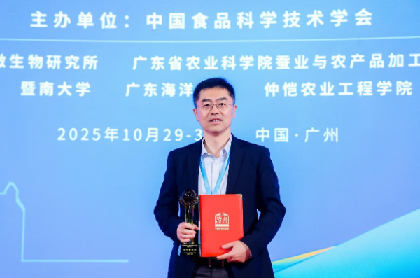 国家乳业技术创新中心主任何剑出席“2025年度中国⻝品科学技术学会科学技术奖颁奖仪式”环节上台领奖