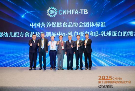 此次会议现场一同见证了“中国营养保健食品协会团体标准——婴幼儿配方食品及乳制品中α-乳白蛋白和β乳球蛋白的测定”启动仪式。从婴幼儿生理需求看,α-乳白蛋白是乳清蛋白中易消化吸收的核心成分,β-乳球蛋白是婴幼儿乳蛋白过敏的主要过敏原之一,两种成分的精准测定对婴幼儿群体尤为关键。通过推进相关团体标准的落地,将更好地助力乳制品行业从“合格产品”向“优质产品”转型,最终保障婴幼儿健康权益和行业高质量发展。