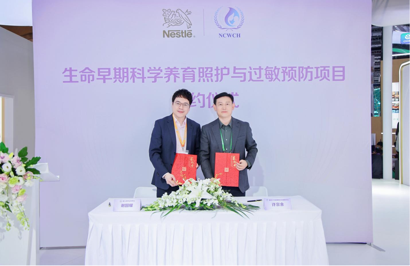11月6日,第八届中国国际进口博览会期间,雀巢母婴以“科学创新守护生命早期”为核心,通过双项目签约启动,展现全球婴幼儿营养健康领军企业的责任担当:一方面携手国家卫生健康委妇幼健康中心(以下简称“国家妇幼健康中心”)签署合作协议,发布《生命早期科学养育照护与过敏预防项目》举措;另一方面联合中国出生缺陷干预救助基金会“早安天使”早产儿关爱专项基金,启动《早产儿公益救助项目》。