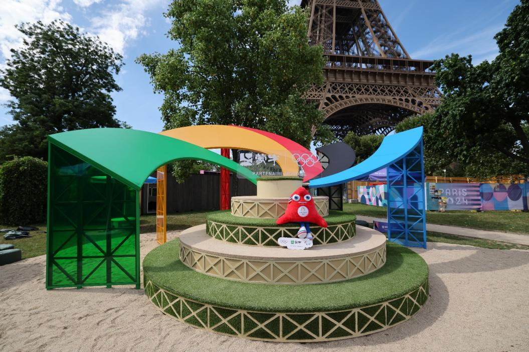 2024年巴黎奥运期间,蒙牛将乌兰布和沙漠治理成果带到了巴黎。在埃菲尔铁塔下的沙滩排球场,蒙牛打造了一块140平方米的沙漠绿洲休闲区,向全球展示了中国防沙治沙的成果与决心,并呼吁更多人加入绿色行列。