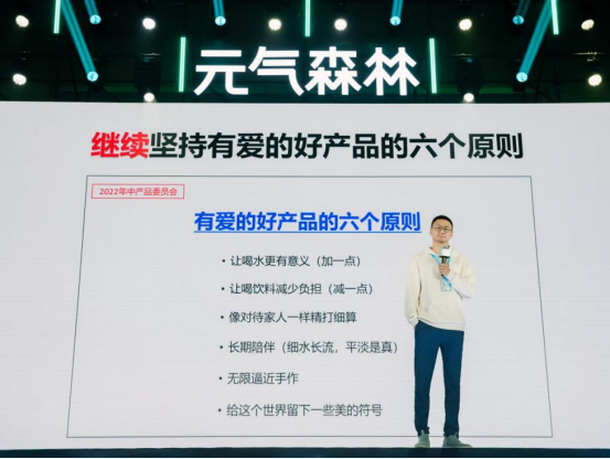 最终,元气森林给出的答案依然是回归做好产品的初心——继续坚持有爱的好产品六原则,即“加一点”让喝水更有意义的成分;“减一点”对用户有负担的饮料成分;要像对待家人一样精打细算做产品;抱着长期陪伴用户的心态做产品;打造无限接近传统手工现做的饮料产品;在包装上,元气森林追求更好看、更有符号感、更有时代烙印。