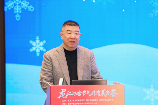 世界中餐业联合会副会长武力在致辞中说,此次活动响应黑龙江省委省政府冰雪经济发展战略,以“龙江、冰雪、节气、非遗”为核心,搭建起美食交流、文化互鉴的优质平台,展现了龙江美食的独特魅力,探索了非遗传承与文旅融合的创新路径。他表示,世界中餐业联合会始终以传承中华饮食文化、推动中餐产业发展为己任,而龙江大地得天独厚的冰雪资源、源远流长的非遗饮食技艺,与联合会的使命高度契合。坚信以美食为媒,能够让更多人领略中餐文化的博大精深,让非遗技艺在时代浪潮中生生不息,让冰雪经济与餐饮产业实现双向赋能、共赢发展。