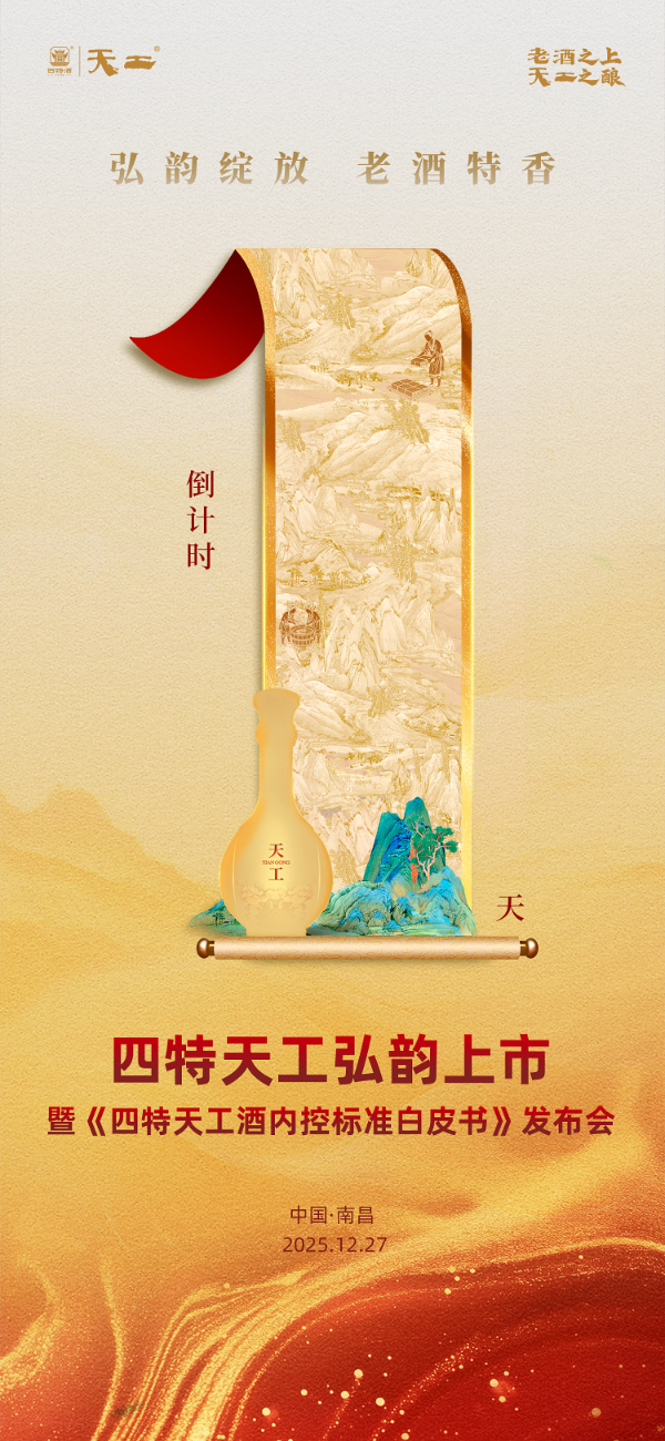 老酒如何“看得见”?品质如何“说得清”?12月27日,四特酒有限责任公司将在南昌举行四特天工弘韵上市暨《四特天工酒内控标准白皮书》发布会,届时将有两款宴席战略新品“天工弘韵·叁”与“天工弘韵·陆”正式亮相。