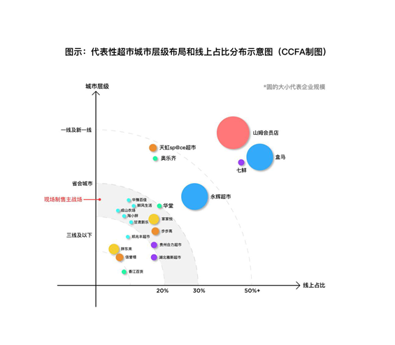 报告首次系统揭示了现场制售业务的三大市场分层格局。在北上广深等高线城市,即时零售渗透率超50%,零售商聚焦“大单品、爆品思维”,主推烤鸡、烘焙、寿司等高毛利商品,并大力发展线上线下一体化。以郑州、西安为代表的省会及重点城市目前已成为现场制售食品的“主战场”,通过五感营销打造色香味俱全的现场氛围,联动生鲜及自有品牌食材销售。而在广大下沉市场,即时零售占比不足10%,超市仍以基础生鲜作为经营核心,现场制售更多扮演“家庭餐桌补充”角色,品类精简、功能务实。