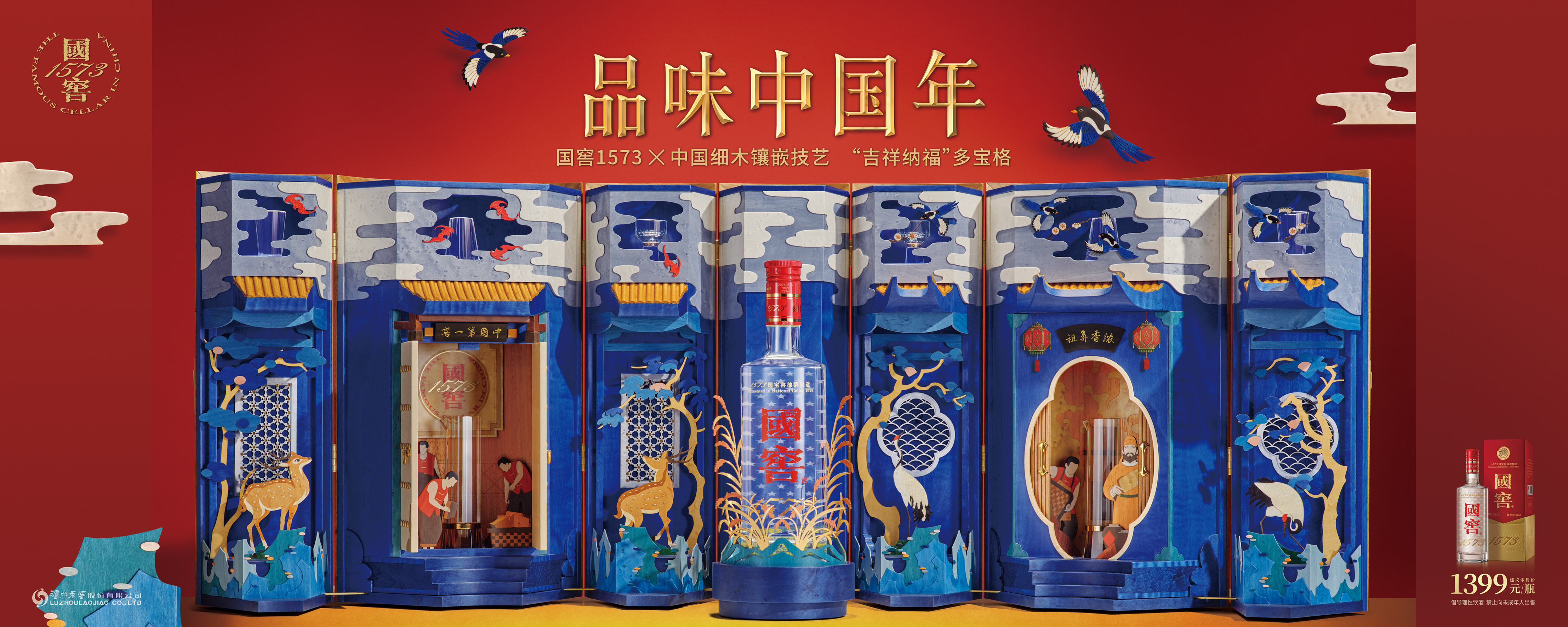 这方「吉祥纳福」多宝格,是器中有礼、格中有情、酒中有年的三重境界。细木镶嵌的千年传承,与国窖1573"活态双国宝"的坚守同频共振——前者以木为媒,传承东方美学的匠心;后者以酒为载体,延续中华文脉的底蕴。
