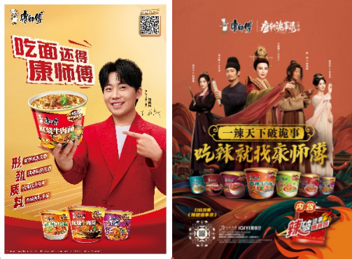 品牌表达上,康师傅紧跟年轻消费者偏好,与《唐诡3》合作推出《辣破诡事录》,将地域辣味融入悬疑叙事,借助IP影响力提升品牌曝光与好感,联名产品销量同比大幅增长;在《喜人奇妙夜2》中,以“快乐经典好搭子”的定位融入喜剧语境,强化品牌亲和力与国民度,实现与年轻人的语境共鸣。