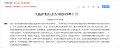 《乳脂肪球膜及其配料的科学共识》于《中国食品学报》刊发