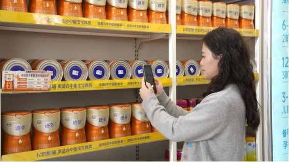 图为消费者扫码体验飞鹤全球首个奶粉新鲜原料溯源系统