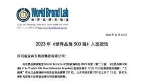 12月13日,由世界品牌实验室(World Brand Lab)发布的2023年度(第二十届)《世界品牌500强》排行榜揭晓。五粮液表现亮眼,连续7年入选榜单。