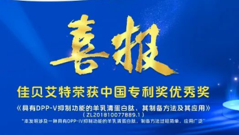 近日,中国专利奖评审办公室发布《第二十三届中国专利奖评审结果公示》,由澳优旗下羊奶粉品牌佳贝艾特申请的《具有DPP-V抑制功能的羊乳清蛋白肽、其制备方法及其应用》发明专利(以下简称“发明专利”)荣获“中国专利奖优秀奖”。