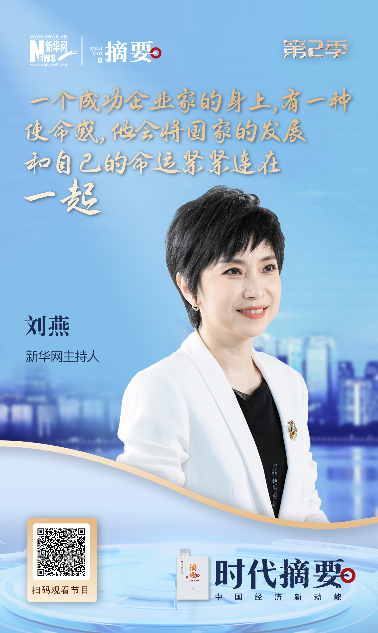 《时代摘要》第二季由新华网和贵州摘要酒共同出品,以“中国经济新动能”为主题,实地走进一批生物科技、新能源、新材料、高端装备制造、新一代信息技术等新兴企业和核心实体企业,以“记录+访谈”形式,探访新科技、新产业、新应用、新场景,走近行业代表性人物,摘要讲述一线创新发展故事,探寻产业不断突破、向上生长的源动力,弘扬中国企业家精神,描绘中国经济未来新图景。