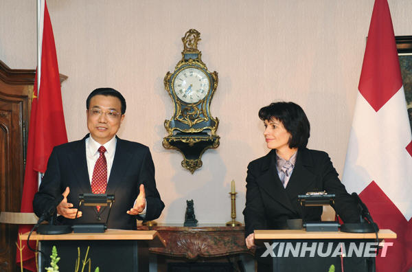 李克强与瑞士联邦主席洛伊特哈德共同会见记者
