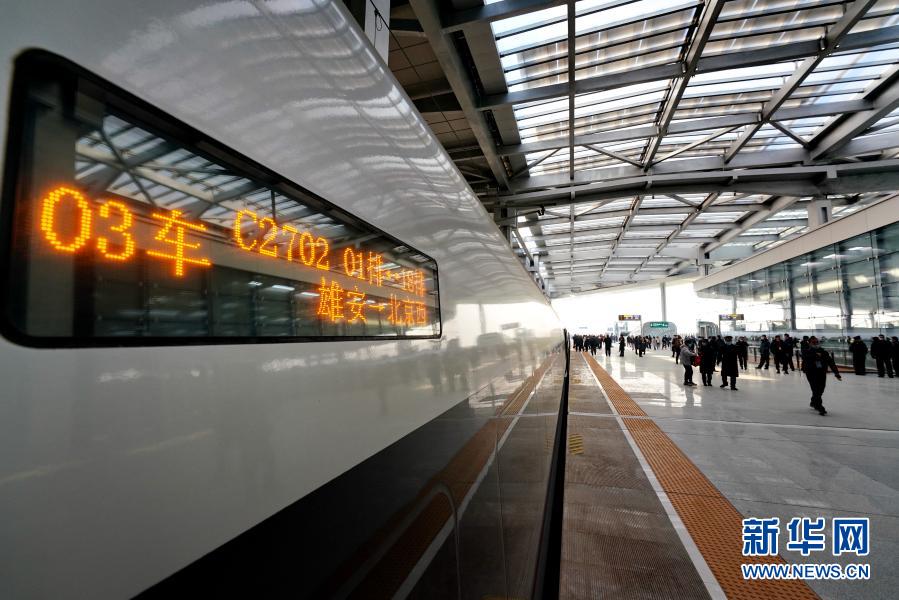 2020年12月27日,从雄安开往北京西的首发列车停靠在雄安站站台。新华社记者 牟宇 摄