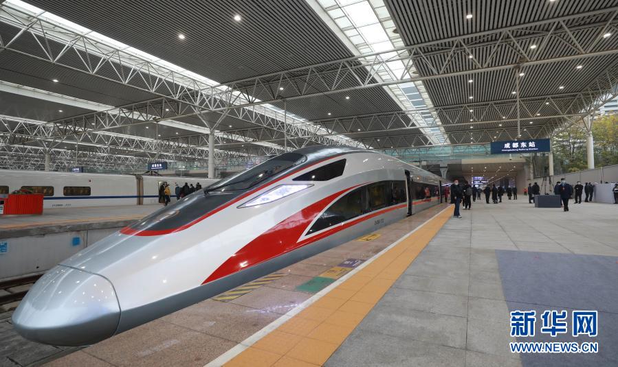 2020年12月24日,G8607次“复兴号”高铁列车从成都东站出发开往重庆沙坪坝。这是西南地区首次部署CR400AF复兴号动车组。新华社记者 胥冰洁 摄