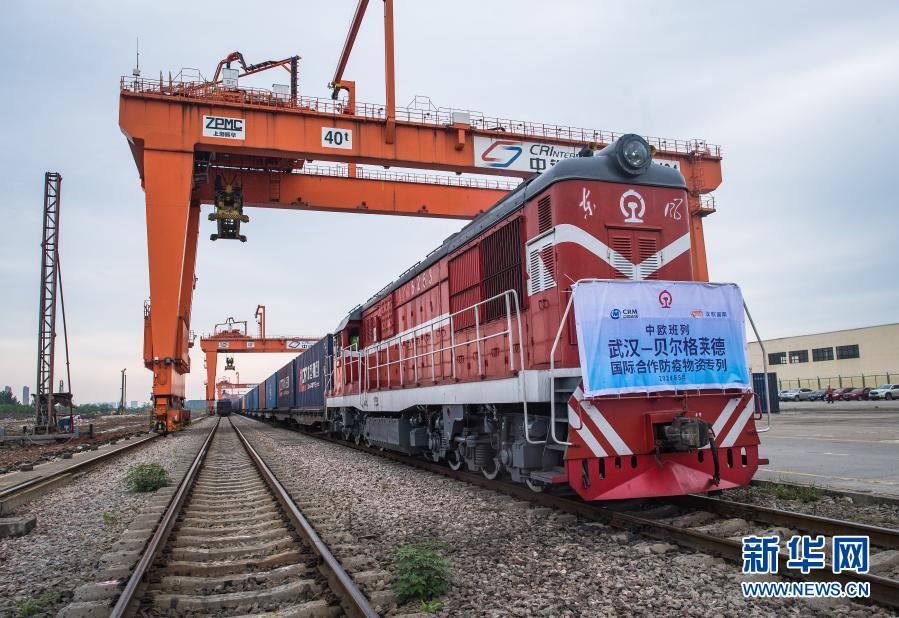 2020年5月9日,开往塞尔维亚贝尔格莱德的中欧班列(武汉)准备从吴家山站驶出。新华社记者 肖艺九 摄