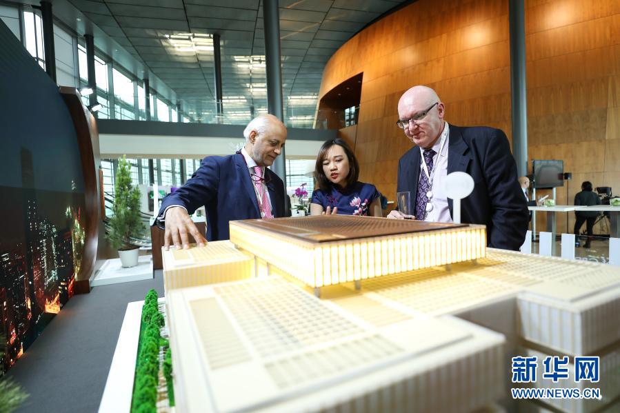 在卢森堡举行的亚投行第四届理事会年会上,与会代表在中国展区参观(2019年7月12日摄)。新华社记者 张铖 摄