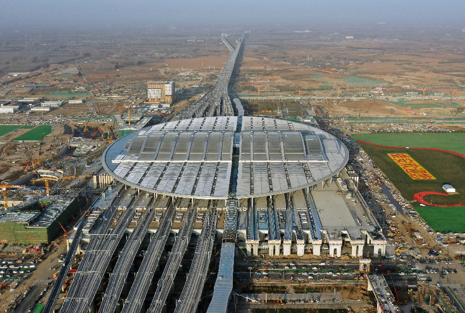 这是2020年12月23日拍摄的京雄城际铁路雄安站(无人机照片)。新华社记者 牟宇 摄