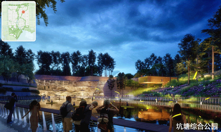 充分利用北高南低的现状地形,随形就势、精巧布局,形成“北城、中苑、南淀”的总体空间格局。