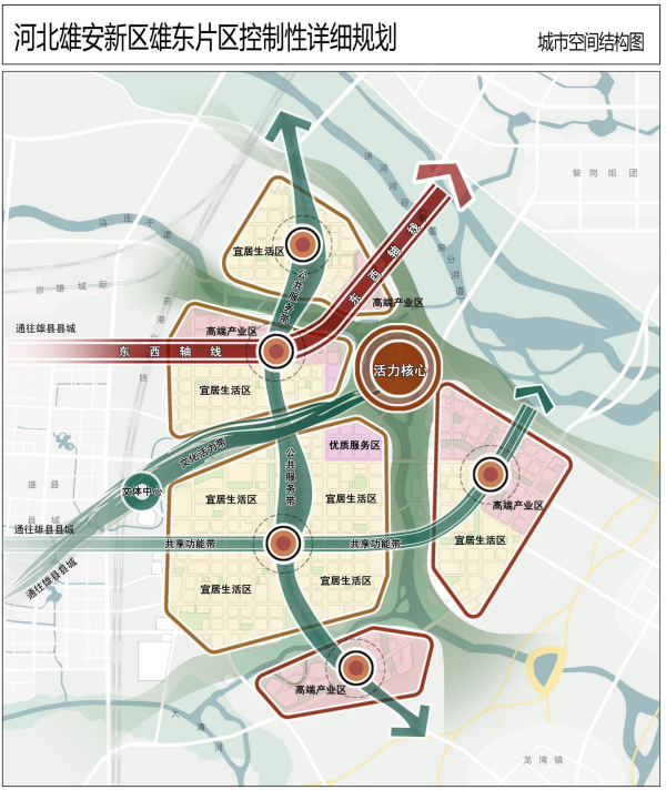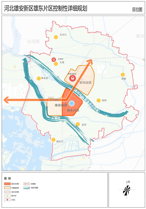 雄东片区作为雄县组团重要组成部分和新区先期建设的区域之一,是保障高铁枢纽周边居民搬迁安居的重点地区,肩负着淀东片区城市功能塑造的重要作用。