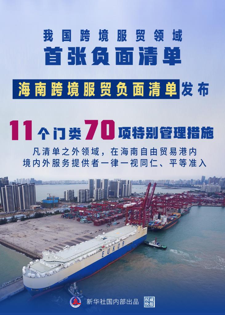 26日,海南自贸港跨境服务贸易负面清单正式发布,宣告了我国首张跨境服务贸易领域负面清单诞生。
