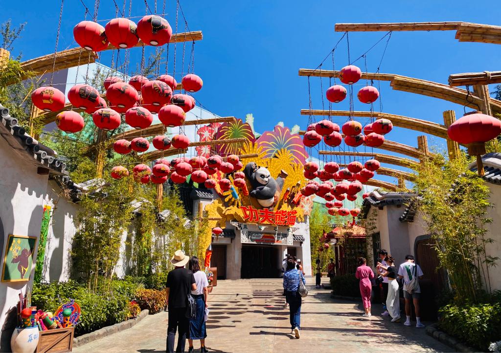 北京环球度假区的功夫熊猫盖世之地主题景区。新华社记者张漫子摄
