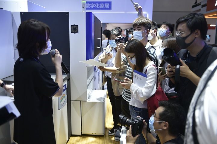 8月31日,媒体记者在2021年中国国际服务贸易交易会国家会议中心展馆内探访。新华社记者 鲁鹏 摄